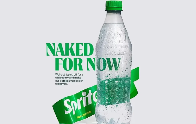 Sprite is testing out a label-less bottle in the UK to simplify the recycling process. The new bottle features the Sprite logo embossed on the front with laser-engraved product information on the back. They are still easily recognizable with the classic green and transparent caps.
